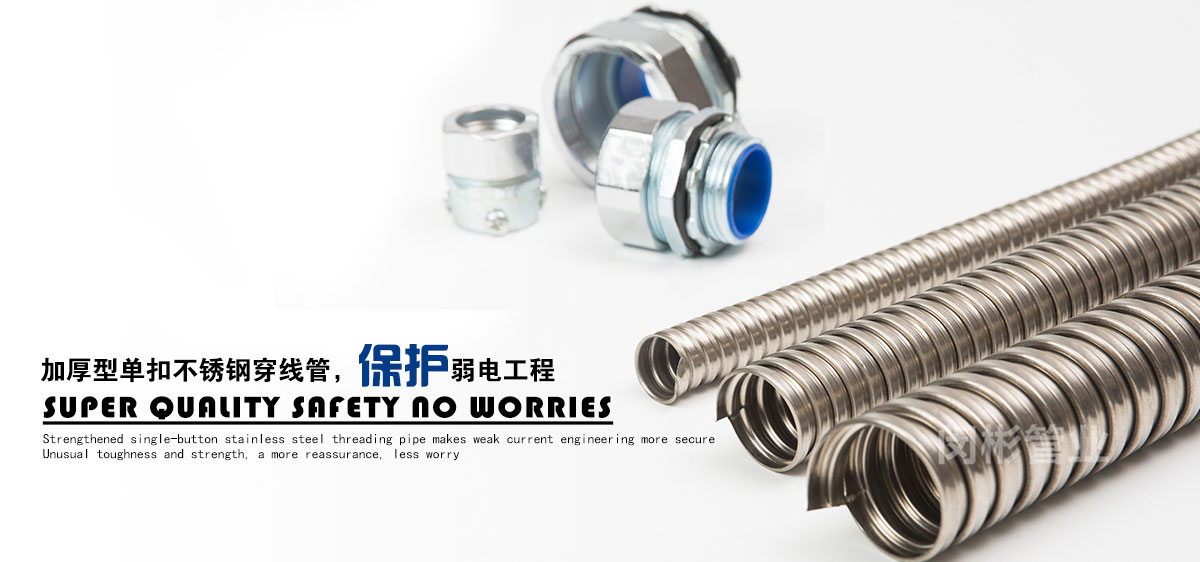 除此之外,公司還致力于金屬軟管接頭,普利卡管,普利卡接頭,不銹鋼穿線管的銷售。公司本著品種多、質(zhì)量優(yōu)、服務(wù)好的宗旨,不斷開發(fā)、創(chuàng)新產(chǎn)品,以滿足日益發(fā)展的市場需要。產(chǎn)品主要包括:金屬軟管接頭 ,橋架接頭,塑料軟管接頭,AD接頭,不銹鋼接頭,普利卡接頭,包塑金屬軟管,不銹鋼軟管,不銹鋼編織軟管,普利卡軟管,尼龍軟管,塑料波紋管,尼龍拖鏈等機床配件。產(chǎn)品廣泛應(yīng)用于建筑、機床、鐵路、車輛、化工、汽車、監(jiān)控、建筑裝修、建筑裝飾、建材、裝修裝飾等行業(yè)。上海閔彬管業(yè)有限公司高質(zhì)量包塑管在實際使用中多家工程單位的認(rèn)可、使用與推廣。